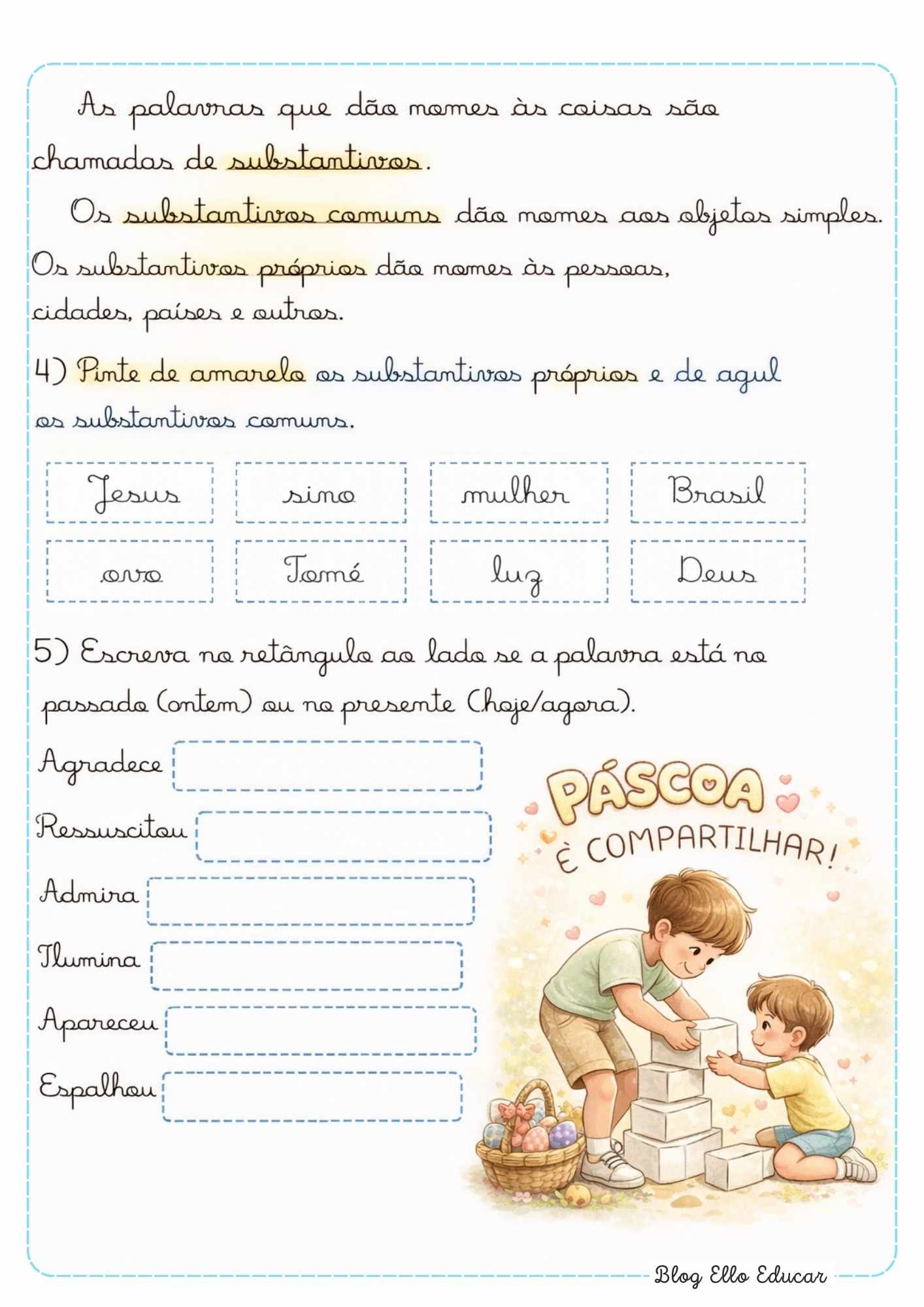 Atenção: É estritamente PROIBIDO, como em qualquer outra atividade deste Blog, postar as imagens deste recurso em grupos de Facebook, WhatsApp, Instagram ou qualquer outra Rede Social. O material é oferecido para uso pessoal e em sala de aula. Se você deseja recomendar este recurso para outros colegas, faça o compartilhamento oficial através do link deste artigo, direcionando-os ao Blog Ello Educar.
