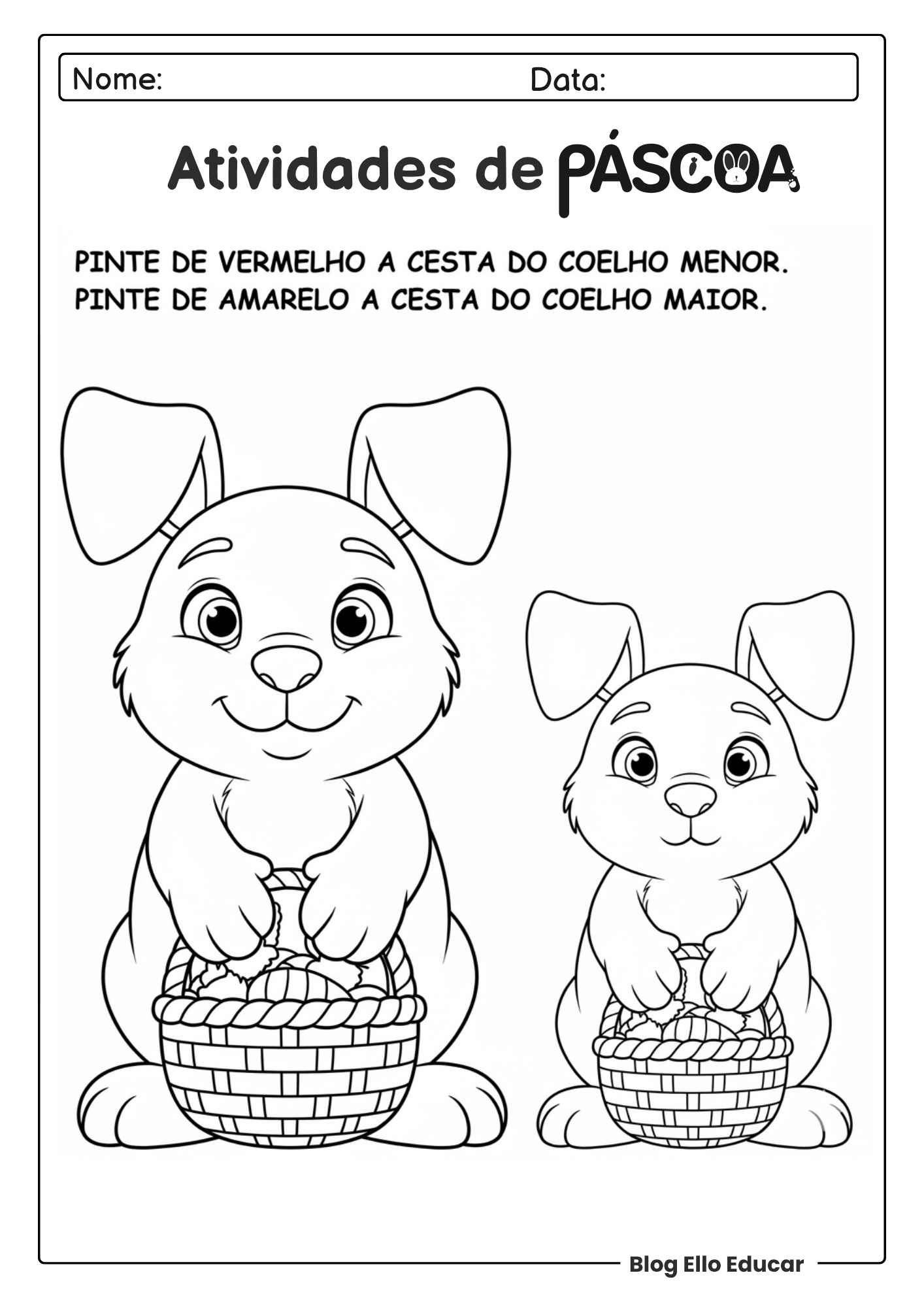 • Atividades: Pintar objetos maiores e menores, como os coelhos com cestas (página 13 ).