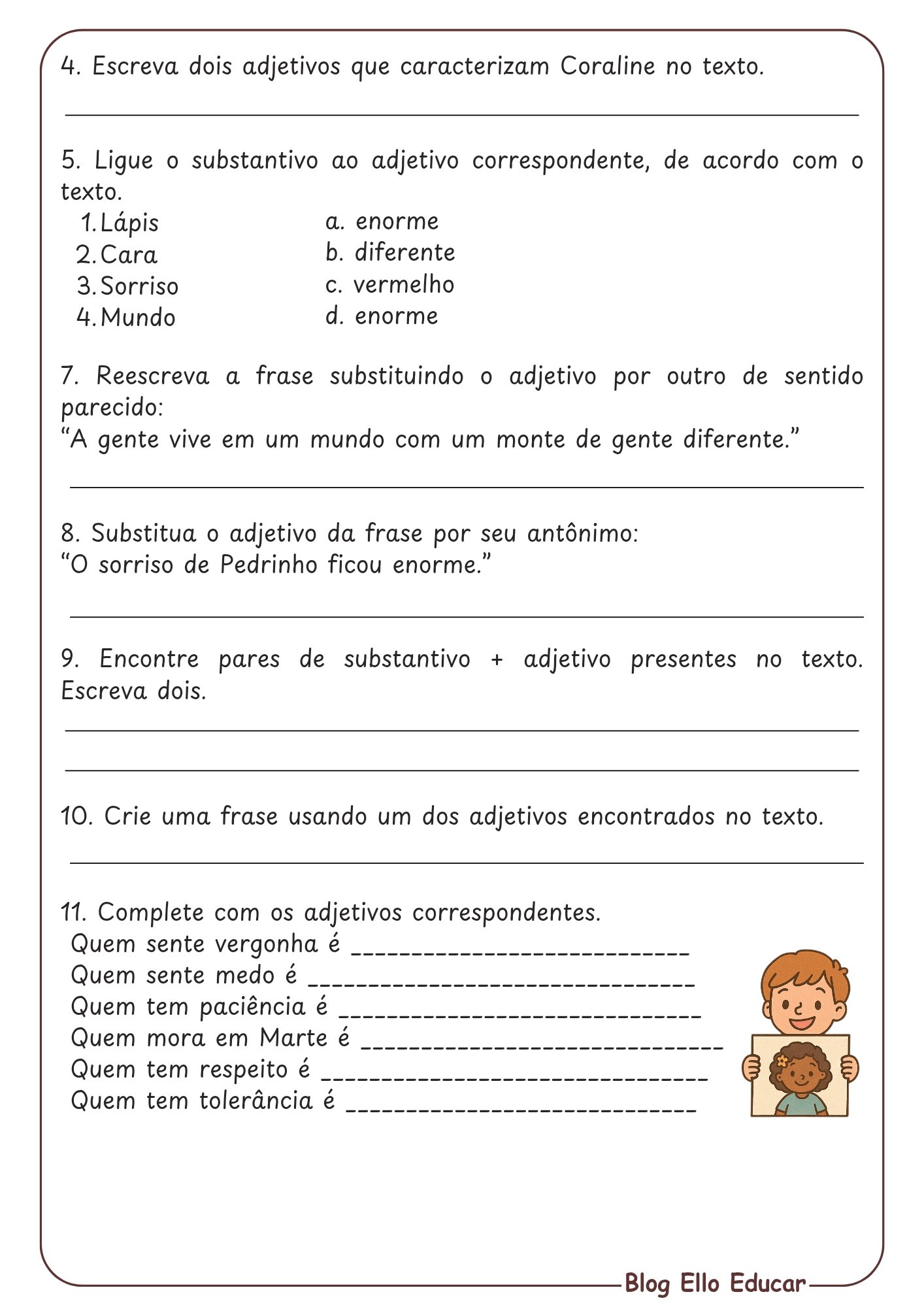 - 11 atividades de gramática focadas em adjetivos (sentimento, sinônimos, antônimos, substantivo + adjetivo)