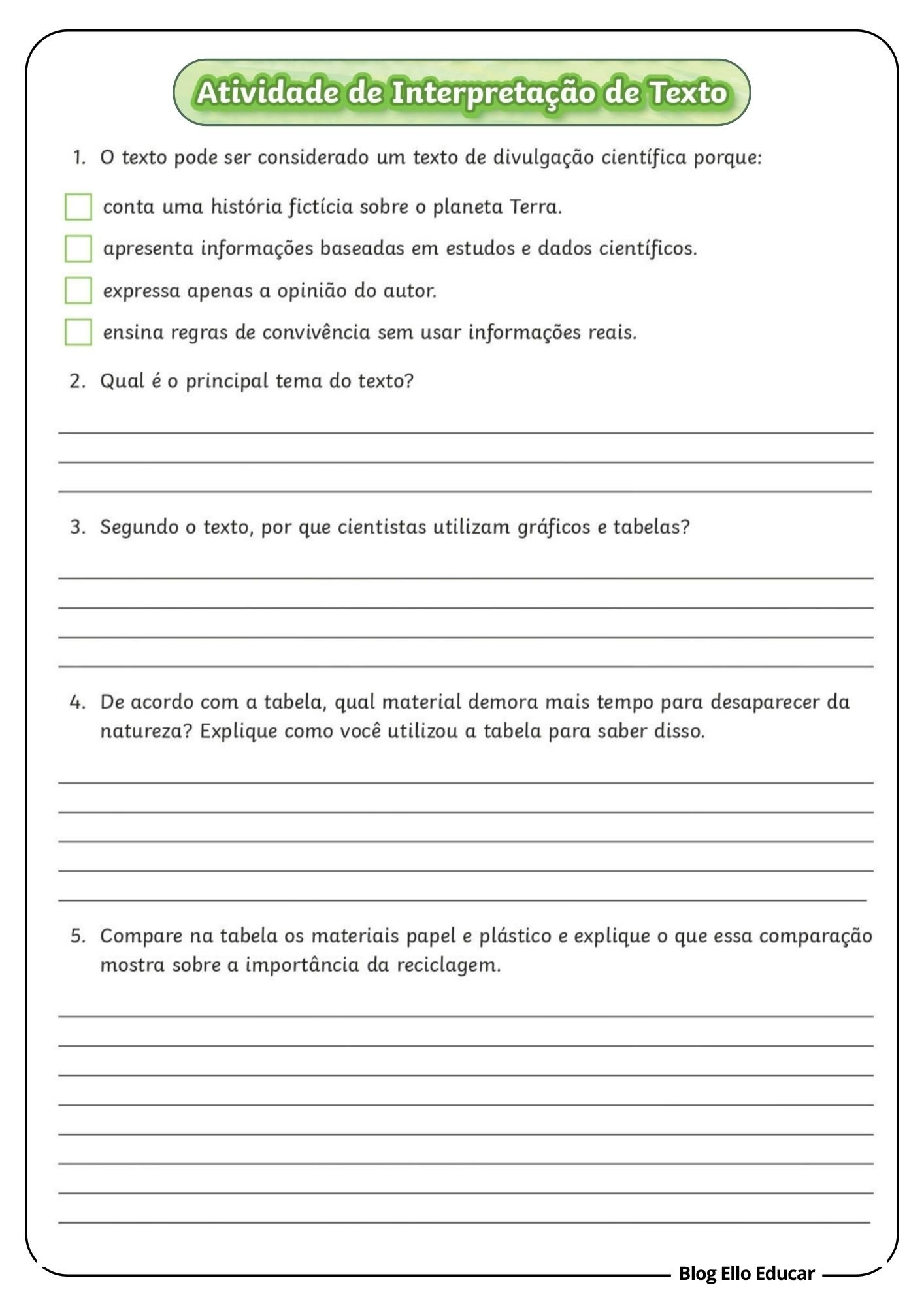 O Blog Ello Educar tem como missão oferecer materiais de qualidade, práticos e acessíveis, como estas Atividades sobre o Dia da Terra para 4° e 5° ano, para apoiar professores na construção de aulas mais dinâmicas, significativas e alinhadas às necessidades dos alunos.