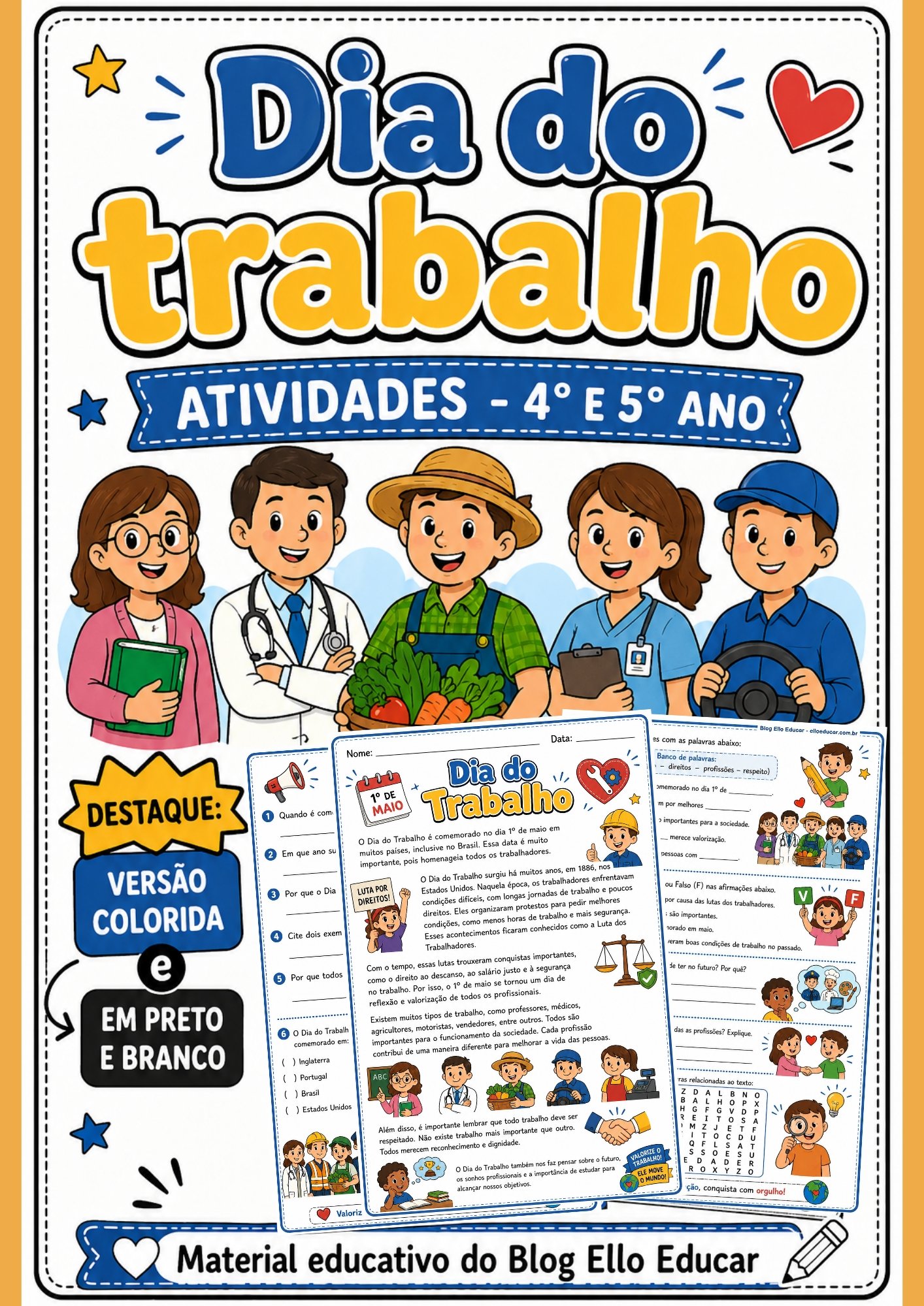 O Blog Ello Educar reafirma seu compromisso em oferecer materiais educativos de qualidade, como estas Atividades do Dia do Trabalho para 4° e 5° ano, que tornam o planejamento mais prático e as aulas mais significativas.