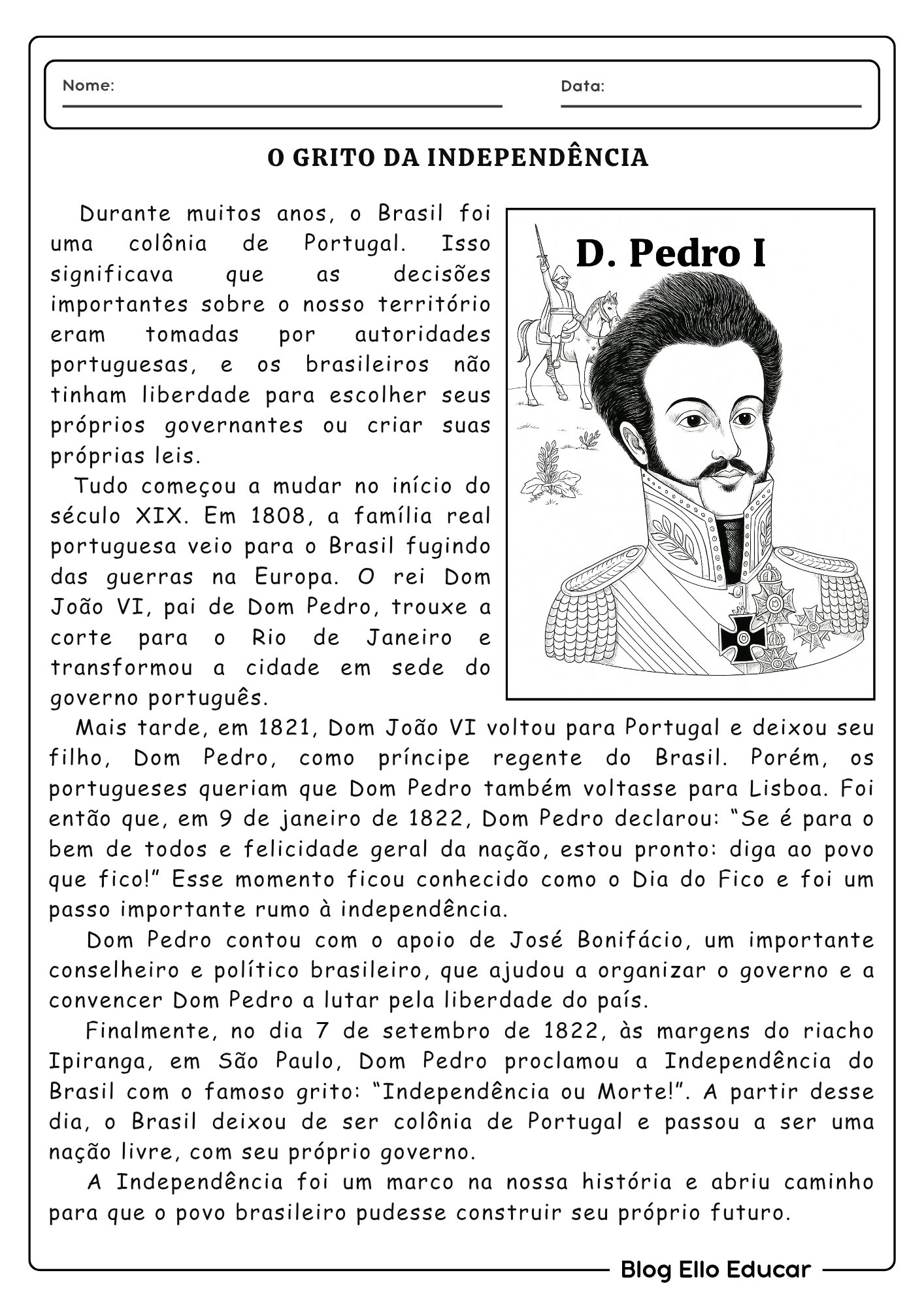 O Blog Ello Educar se dedica a fornecer materiais de qualidade, como essas atividades da Independência do Brasil para o 5° ano, que ajudam professores a criar aulas dinâmicas e impactantes.