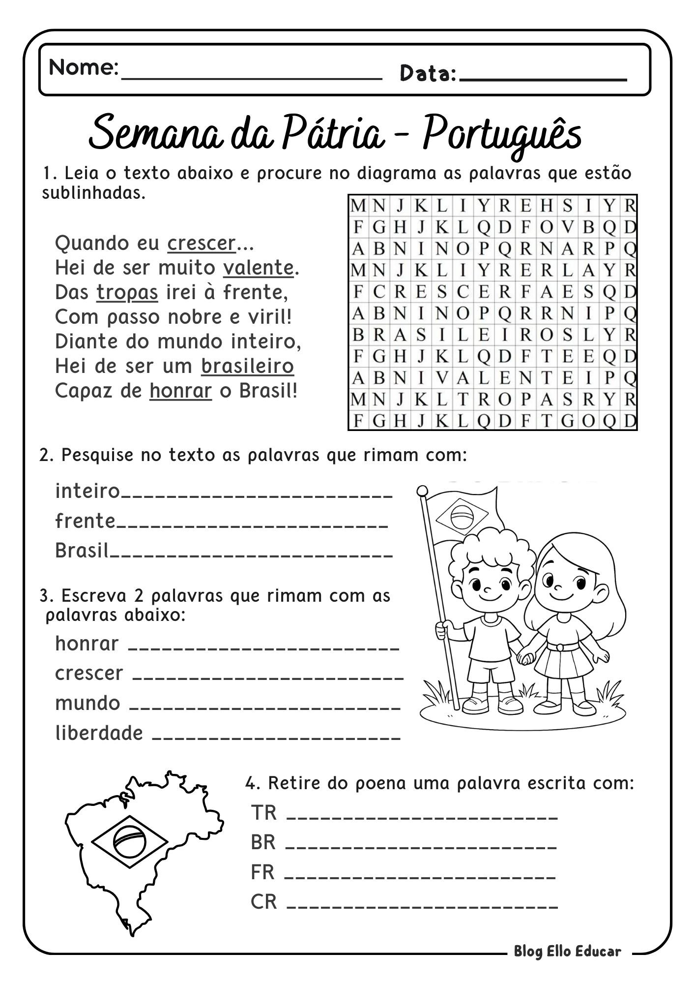 Garanta agora mesmo este recurso incrível e prepare aulas ainda mais memoráveis e dinâmicas! Ao visitar a página, você também encontrará atividades variadas para trabalhar a Semana da Pátria, como desenhos para colorir, atividades para a Educação Infantil, Ensino Fundamental I e II, passatempos e muito mais, todas prontas para baixar e imprimir gratuitamente.