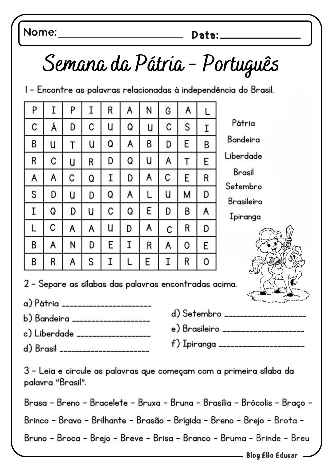- Atividades sobre a Semana da Independência do Brasil para Educação Infantil: Apostila Gratuita.