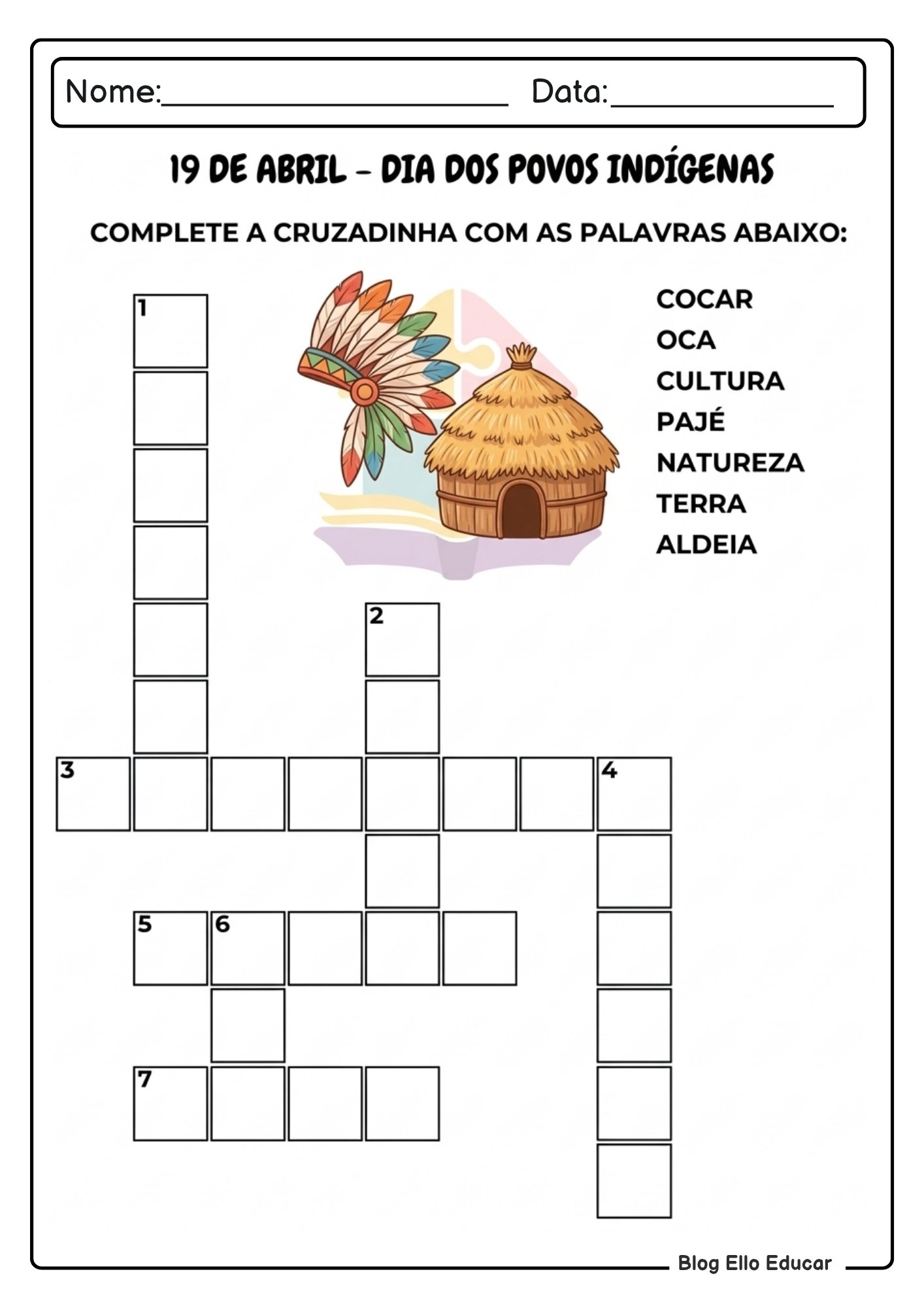 10. Cruzadinha temática indígena