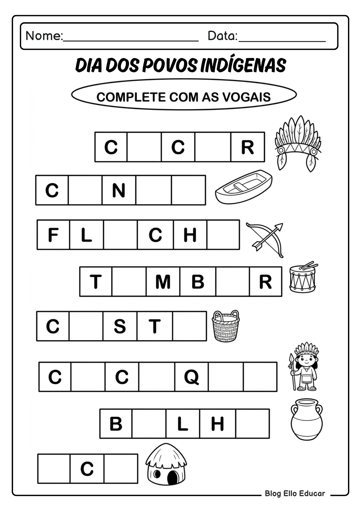 3. Complete com as vogais (palavras da cultura indígena)