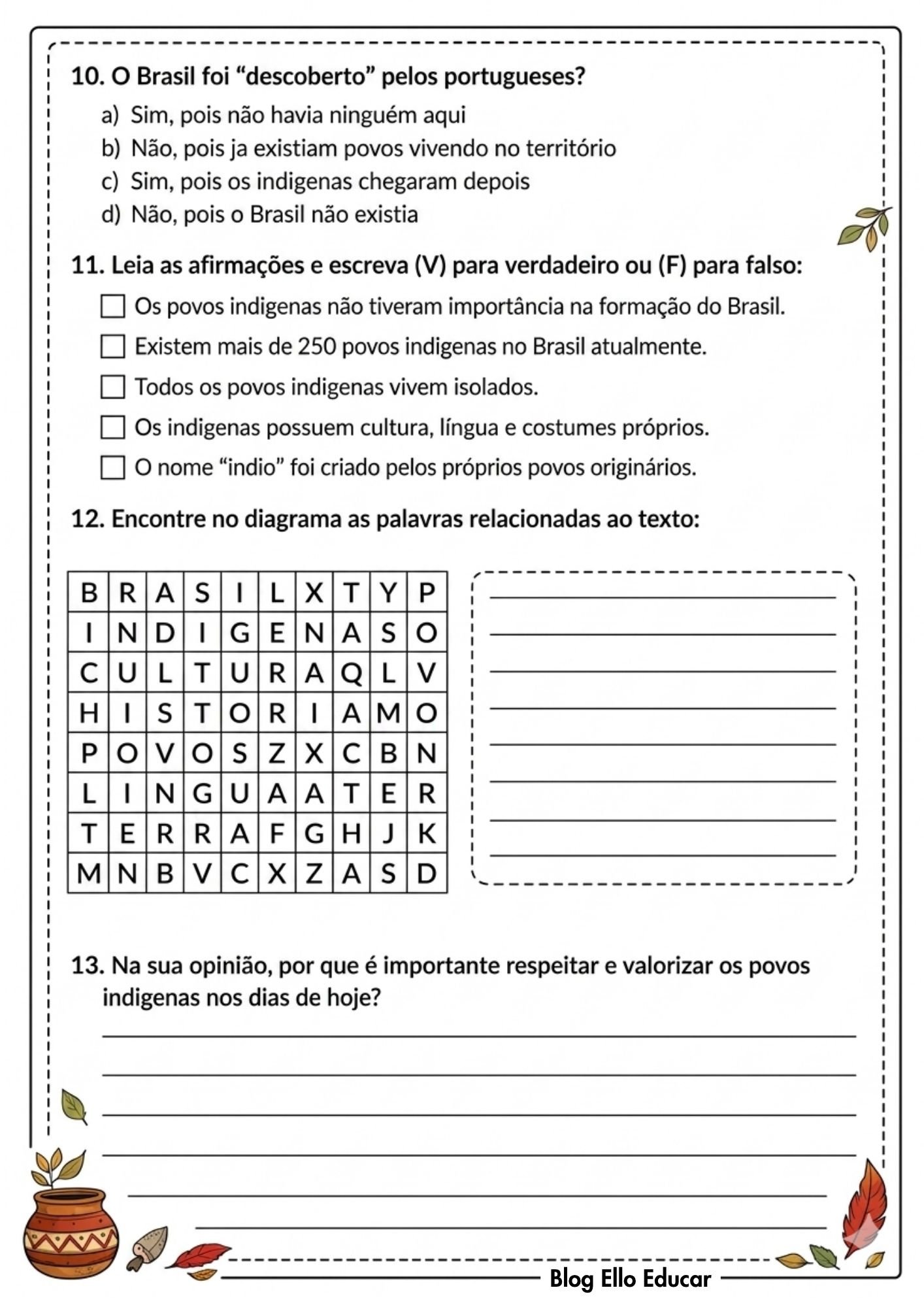 - Atividades sobre o Dia dos povos Indígenas 4° e 5° ano: PDF grátis com Plano de Aula