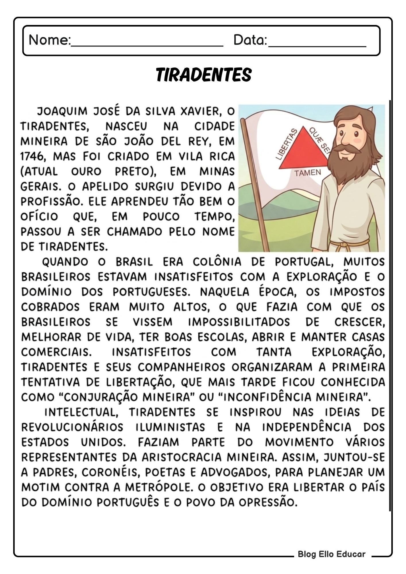 O Blog Ello Educar tem como missão oferecer materiais de qualidade que facilitem o dia a dia dos professores e tornem as aulas mais dinâmicas e significativas. As Atividades sobre Tiradentes para 4° ano são um exemplo desse compromisso com a educação.