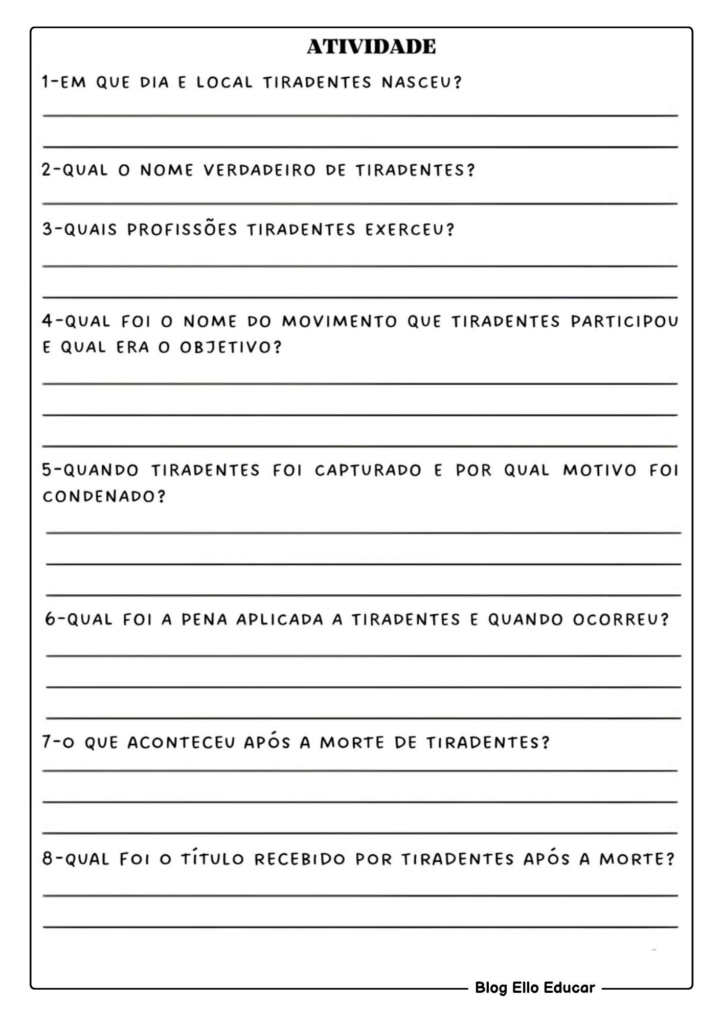 O Blog Ello Educar reafirma seu compromisso em oferecer materiais educativos de qualidade, como estas Atividades sobre Tiradentes para 5° ano, que facilitam o trabalho do professor e tornam o aprendizado mais significativo.