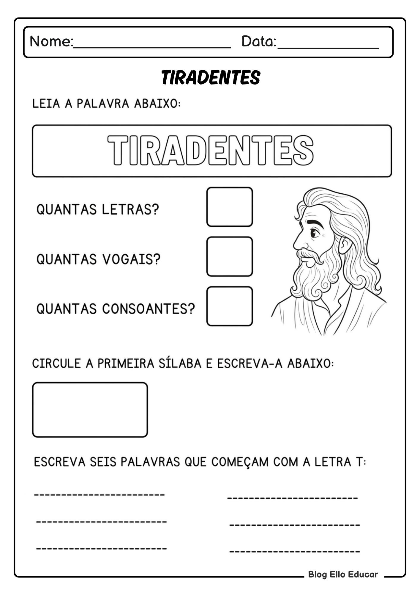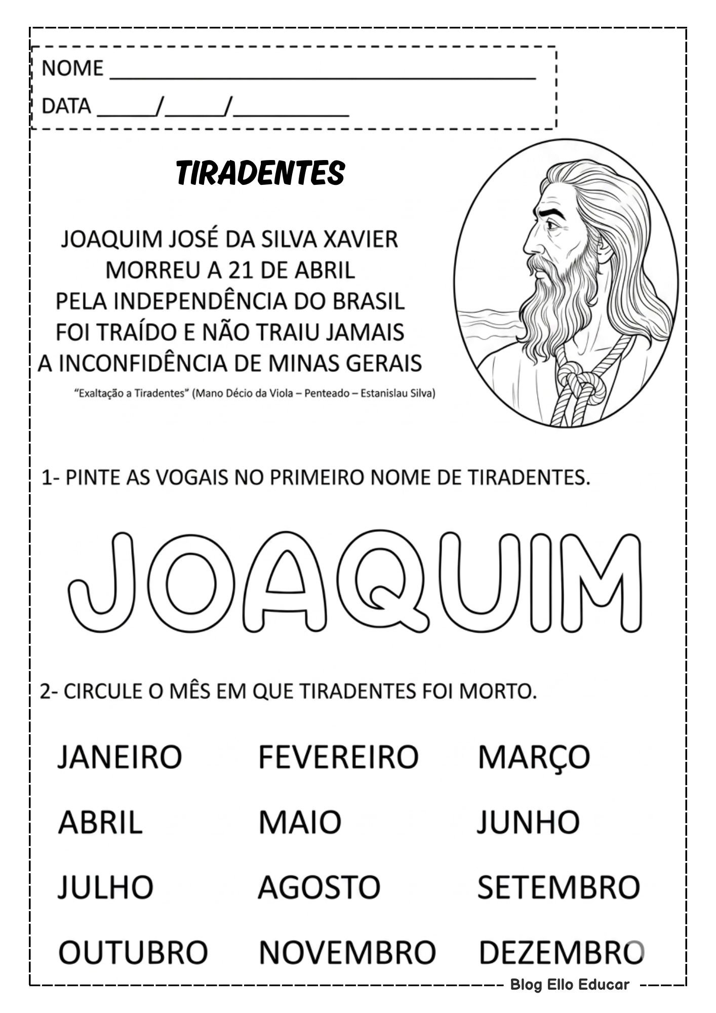 Pensando nisso, o Blog Ello Educar preparou um material completo e interdisciplinar, ideal para alunos em fase de alfabetização. O recurso faz parte de um Kit de atividades sobre Tiradentes para alfabetização, organizado com muito cuidado pela professora Lídia Maria, com o objetivo de facilitar o planejamento pedagógico e enriquecer suas aulas.