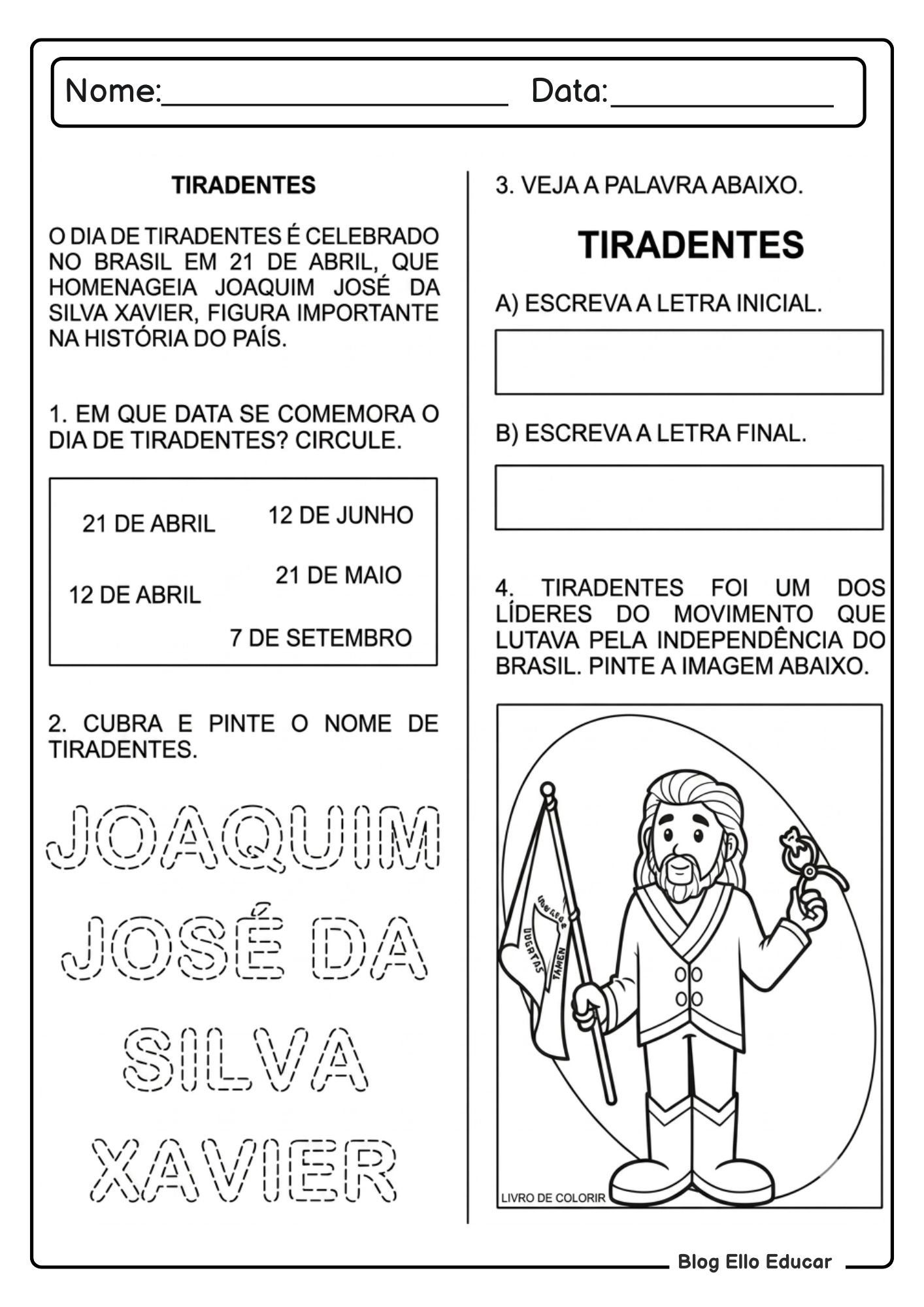 O Blog Ello Educar reafirma seu compromisso em oferecer materiais pedagógicos de qualidade, como este kit de Atividades sobre Tiradentes para alfabetização, que contribuem diretamente para aulas mais dinâmicas, organizadas e significativas.